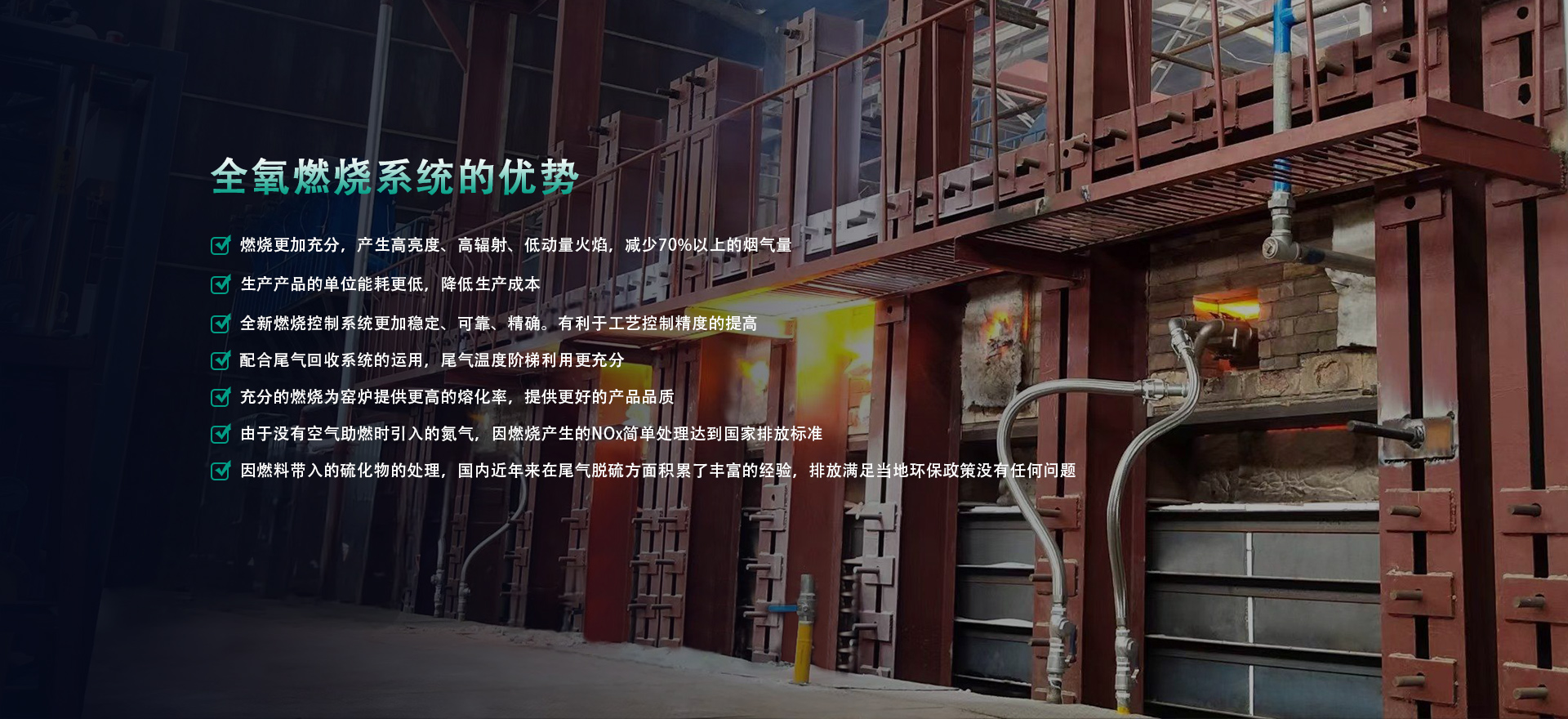 提供方案:成套熱能解決方案。高溫領(lǐng)域,采用全氧或富氧燃燒系統(tǒng),包含全氧燃燒器、燃?xì)?氧氣管路系統(tǒng)以及自動化控制系統(tǒng)